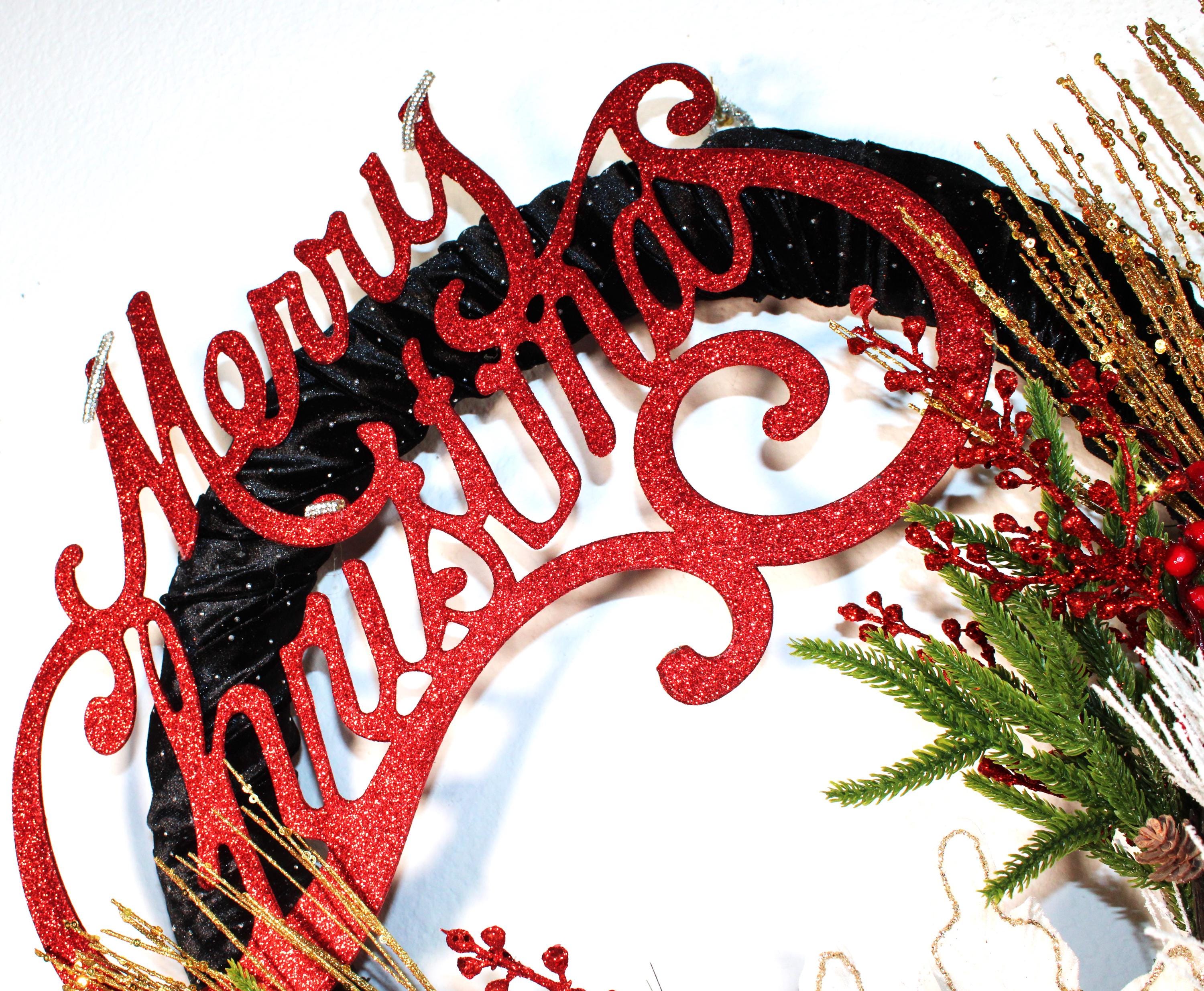 MERRY CHRISTMAS DOOR Wreath, 25" W X 23" H