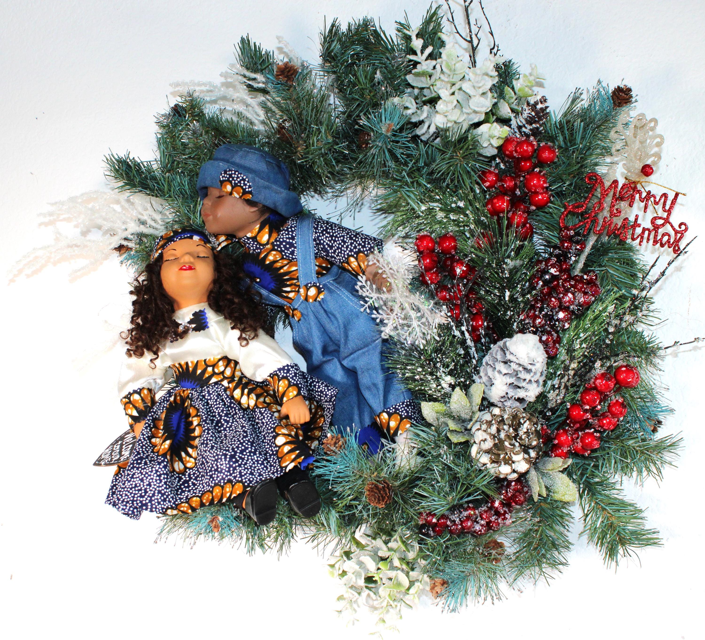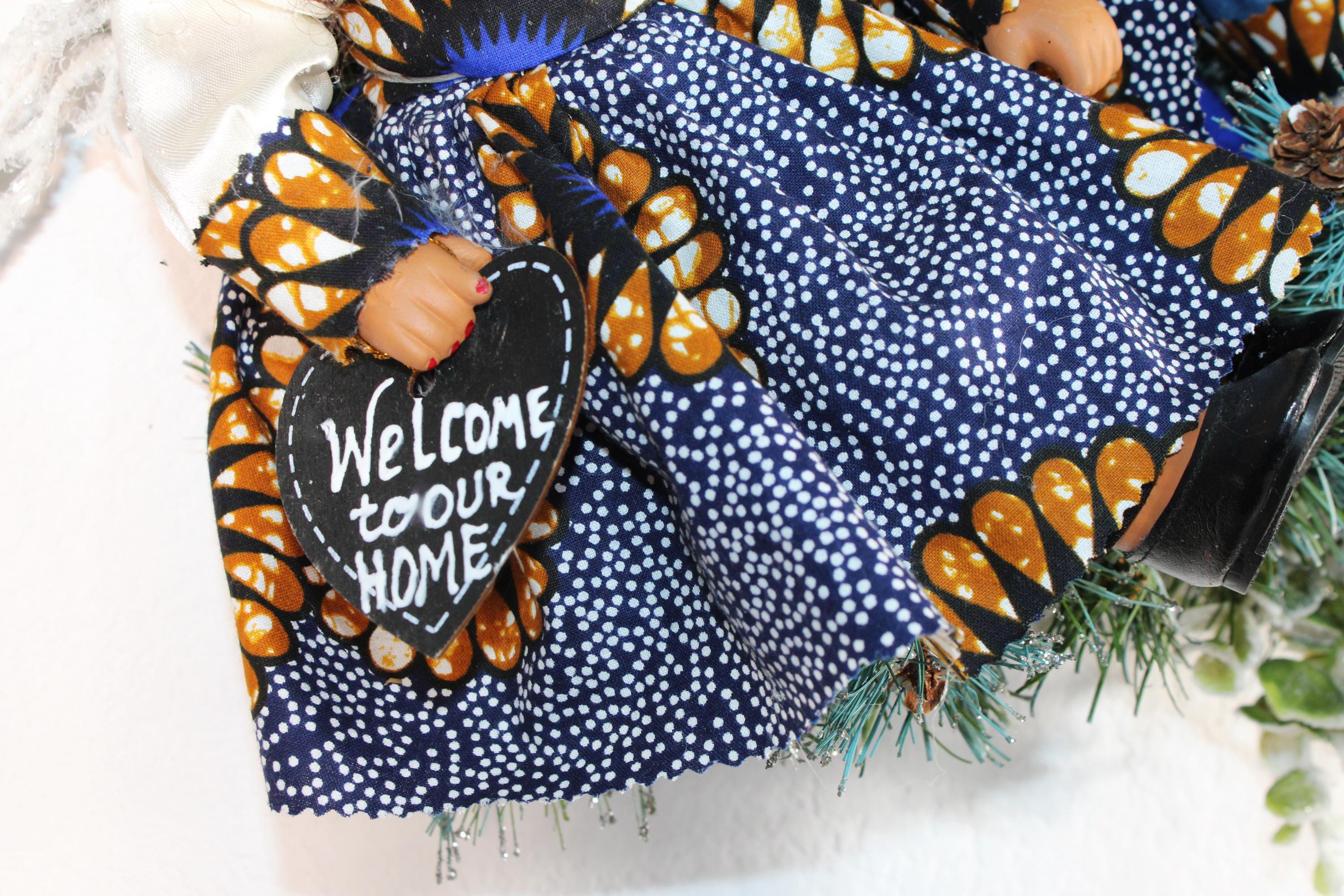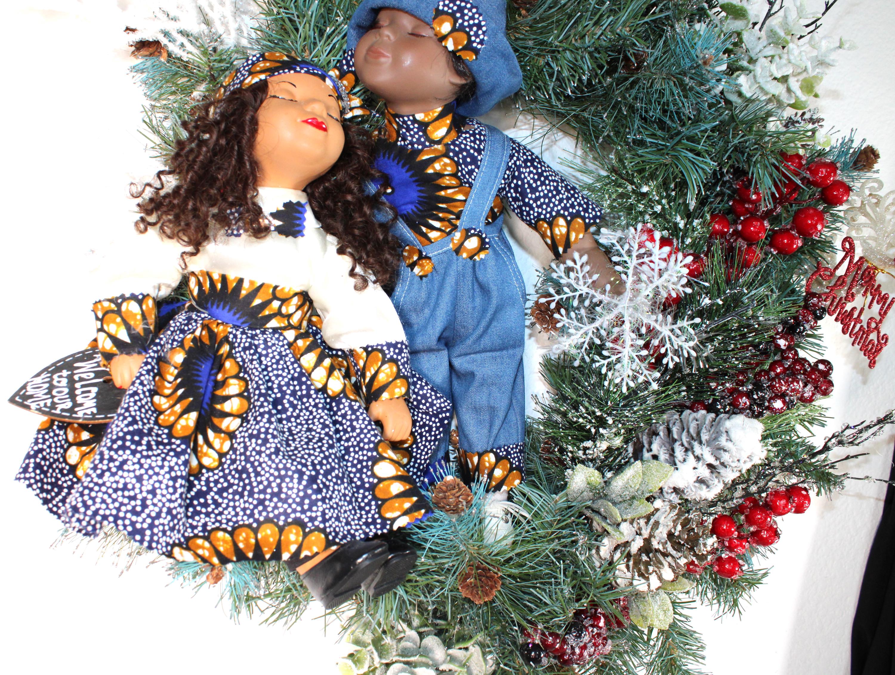 African American Porcelain Doll Wreath (CHRISTMAS/WELCOME to Our HOME) 24" X 24"