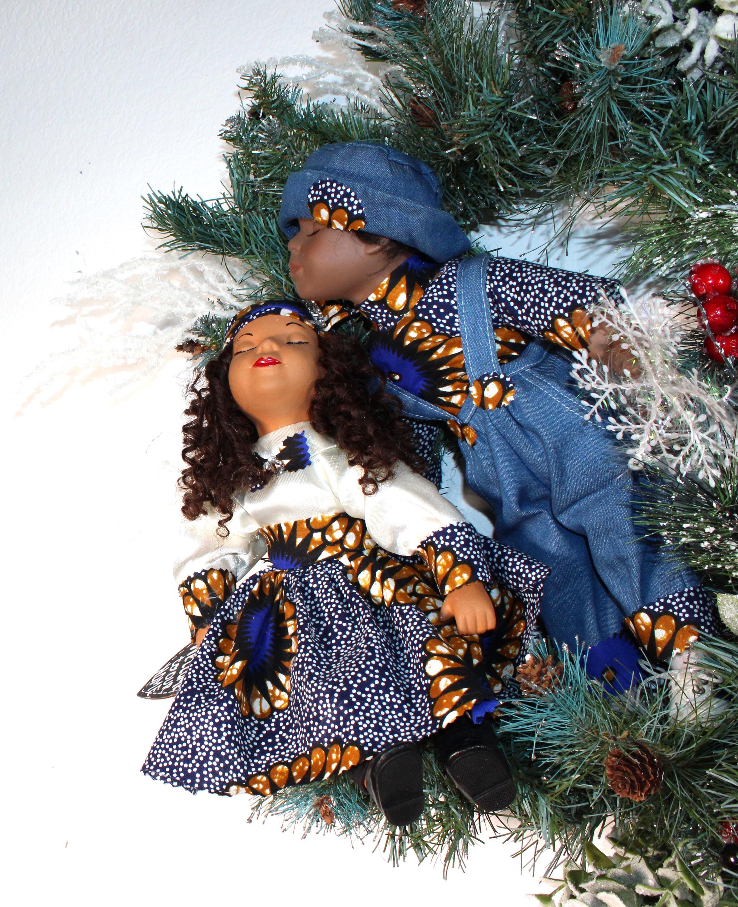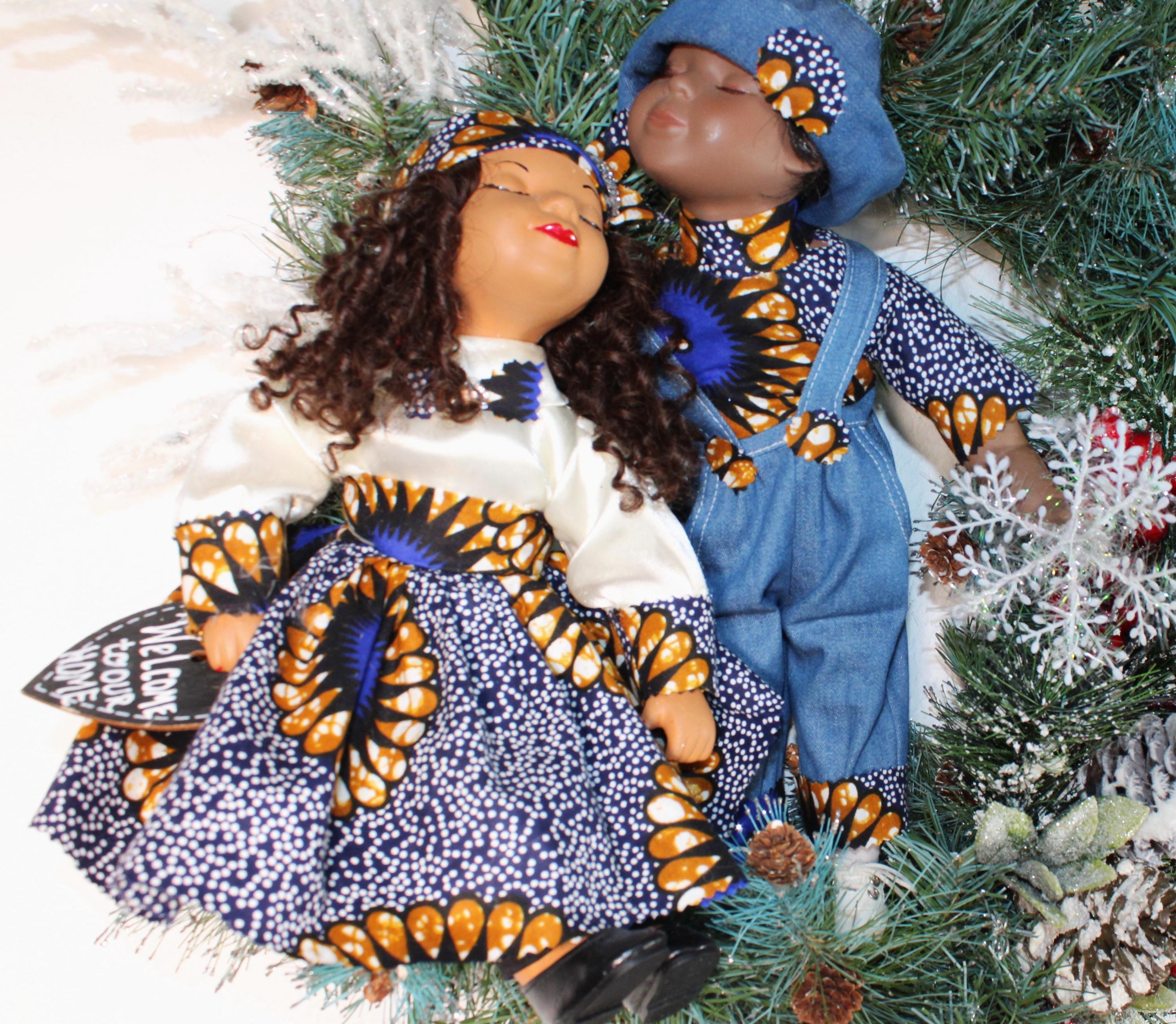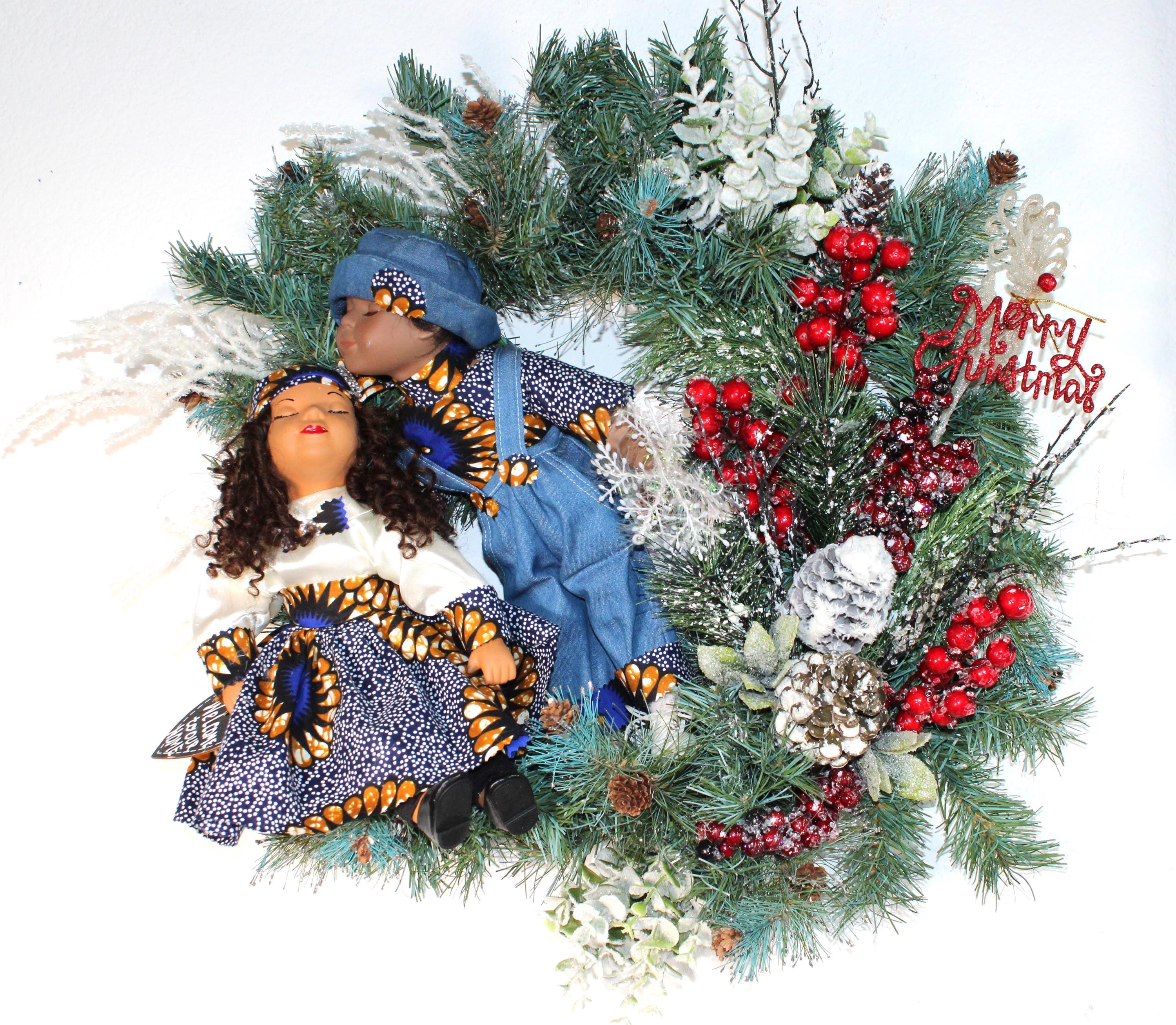 African American Porcelain Doll Wreath (CHRISTMAS/WELCOME to Our HOME) 24" X 24"